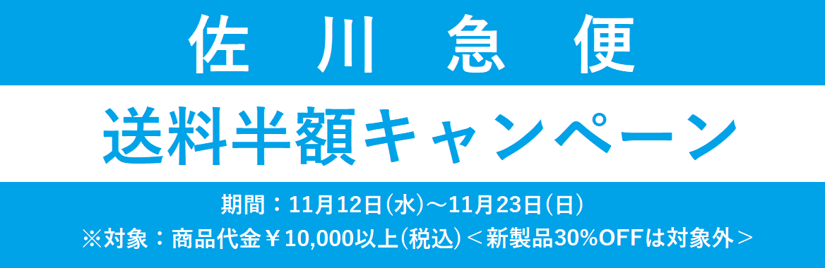 11月13日(水)から、通販での佐川急便をご選択していただいたお客様に送料半額(50%OFF)にて発送させていただくキャンペーンを実施いたします。